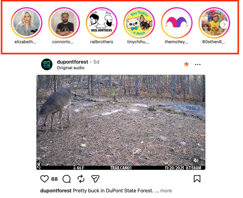 How so? Take your phone out and open FB or Instagram. What's at the top of the feed every time? Stories! I hear so many businesses lamenting that they don't have the social media visibility they desire, and then I notice they aren't even consistently using the stories feed to share their own posts, photos, videos, and more. It's hard to overstate the missed opportunity here.
