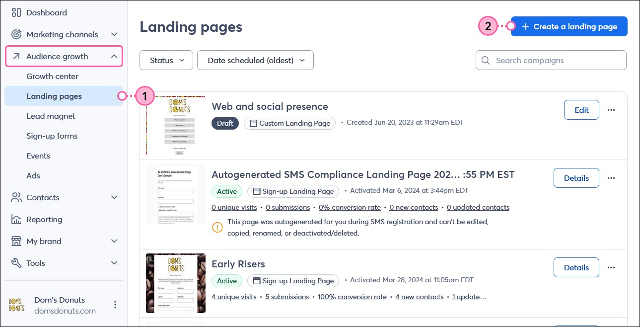 A sign-up landing page is easy to create and can be shared on social media, in ads, or anywhere your customers might be. There are many creative ways to integrate these forms into your website, such as embedding them in your webpage text, placing them at the top or bottom with a striking banner, using a pop-out animation, or having a small window appear when needed.