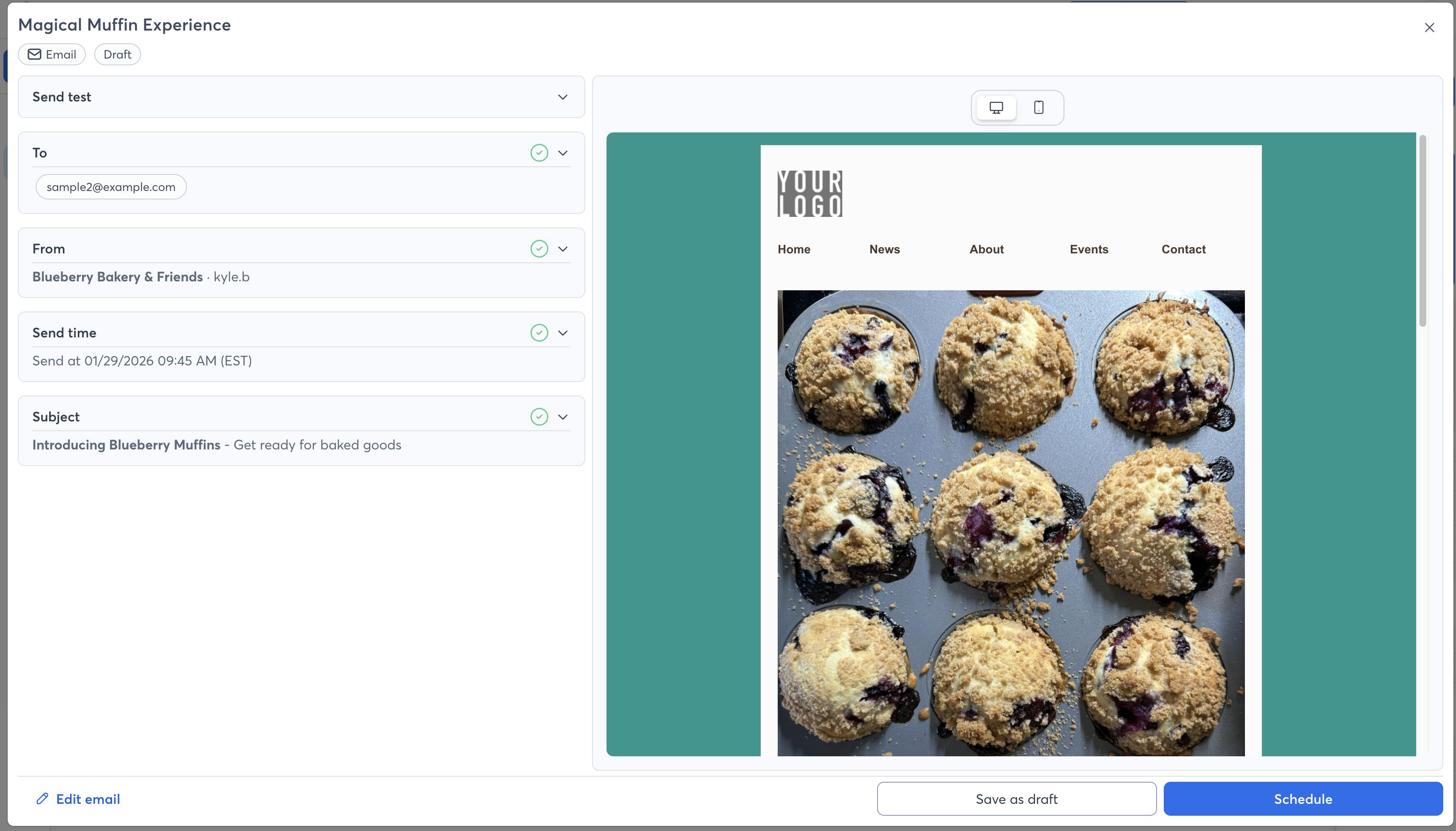 By popular demand, the accordions are all closed by default! We made some changes to them so that they show a bit of info when they're closed. No need to open every section up to make sure your list selection, from address, or send time is good!