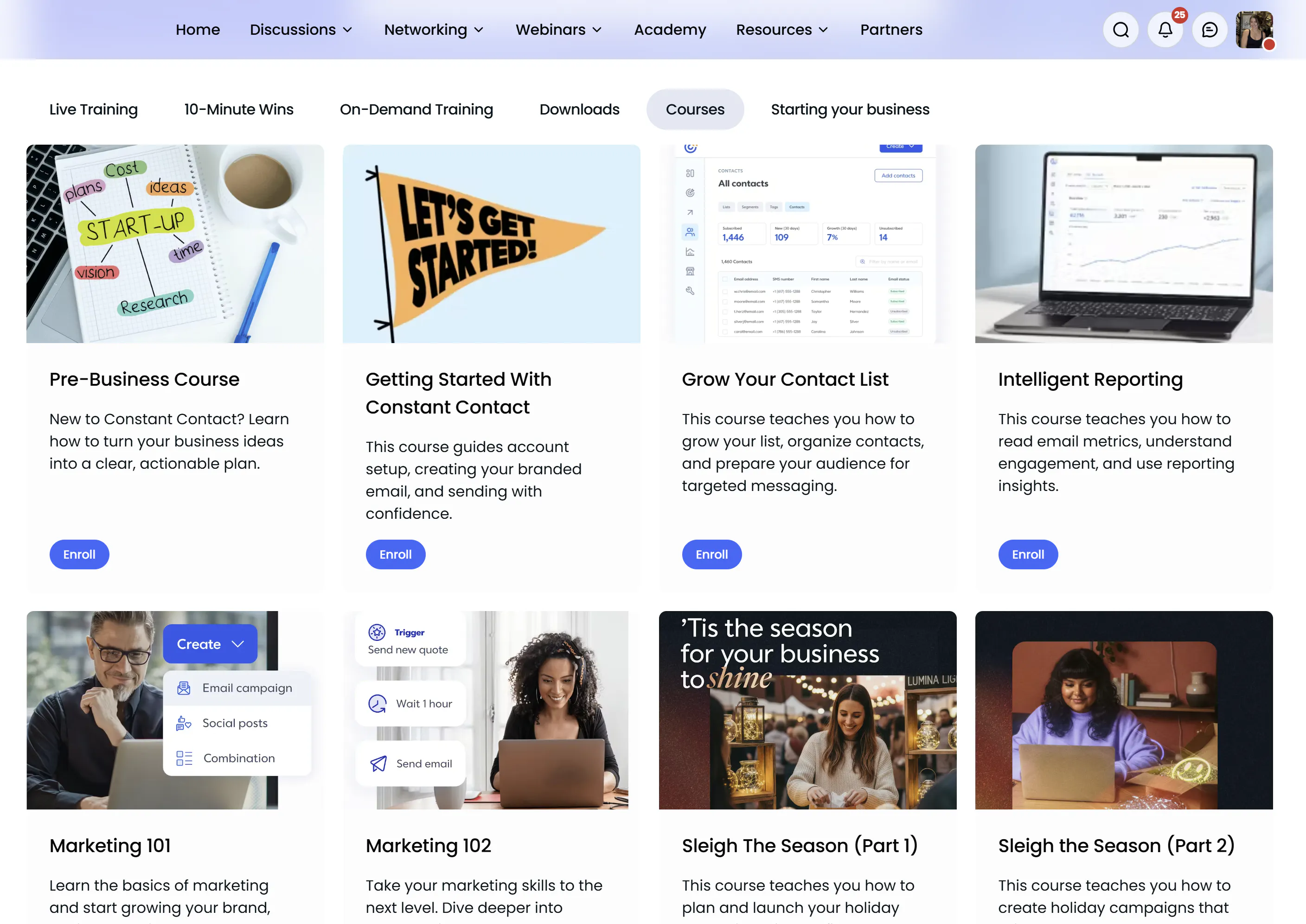 The Courses tab is directly connected to our Academy. When you browse courses here, you are accessing the full Academy experience from within the community.