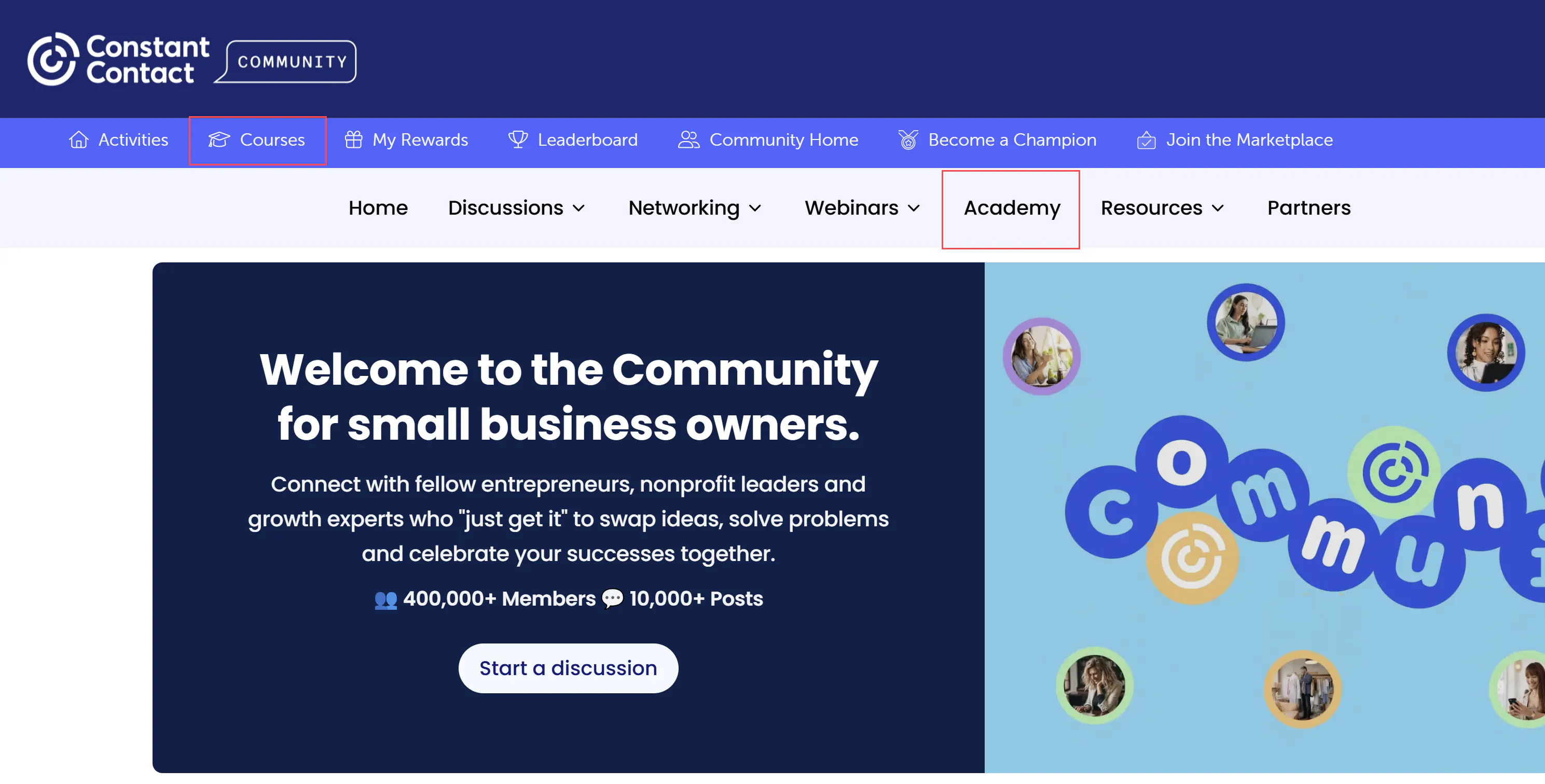 Go to the Courses tab OR the Academy