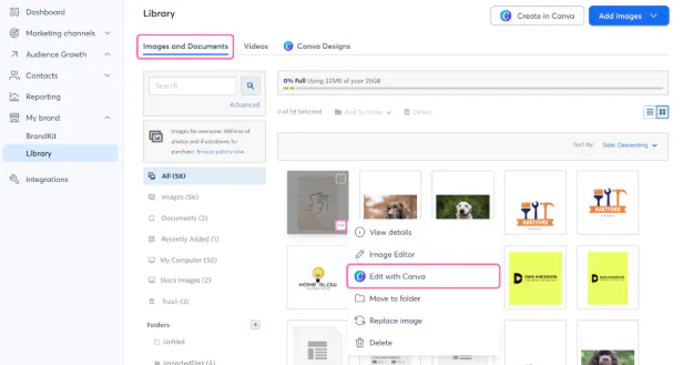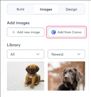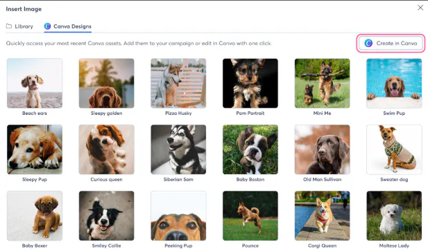 Start a brand-new design in Canva directly from your Constant Contact Library.
