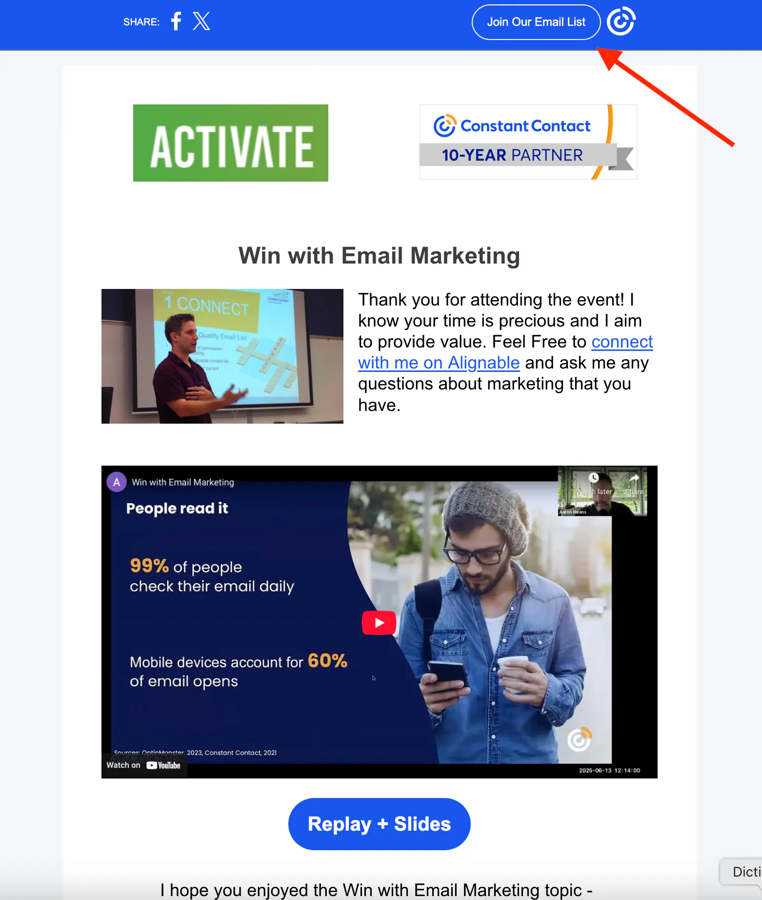 You spend effort and energy to make your email marketing great, so why should it stop there? That great content can not only be shared onto social, but it can grow your list at the same time.