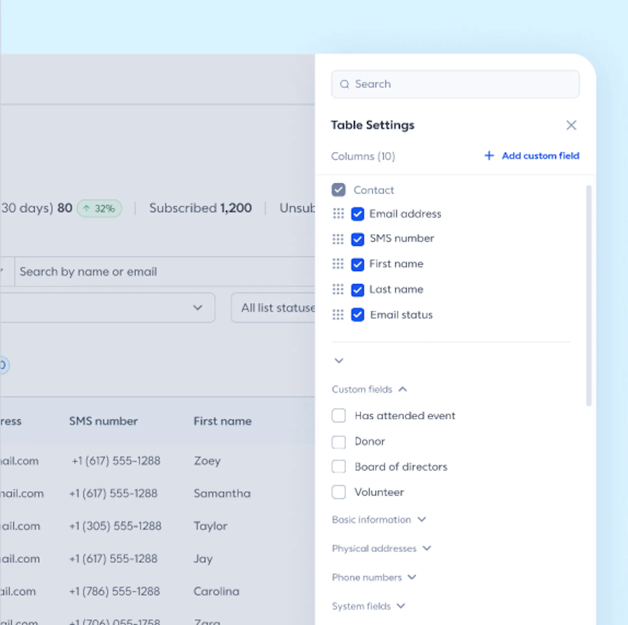 Updated contacts: Flexibly customize your contacts with pinned fields, A/Z sorting, draggable sizing and quick views to make contact changes on the fly.